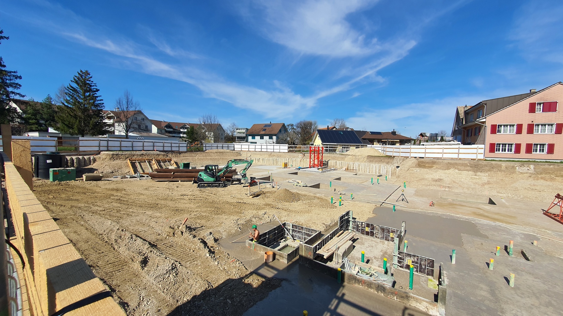 Die Aushubarbeiten sind zu 90% erstellt. Mit den Baumeisterarbeiten wird in 1 Woche gestartet.