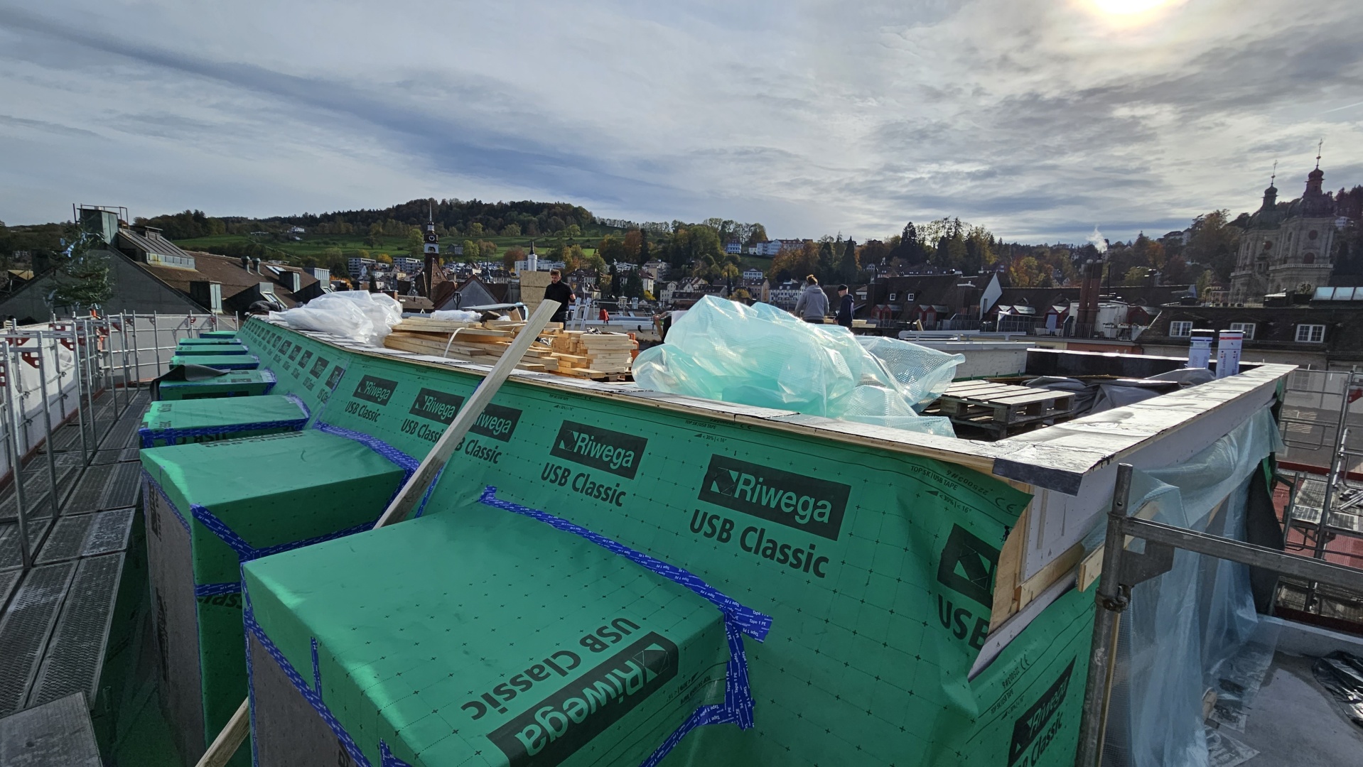 Die Aufrichtarbeiten konnten termingerecht per Ende Oktober abgeschlossen werden. Die Haustechnik-Unternehmer starten mit den Rohinstallationen.