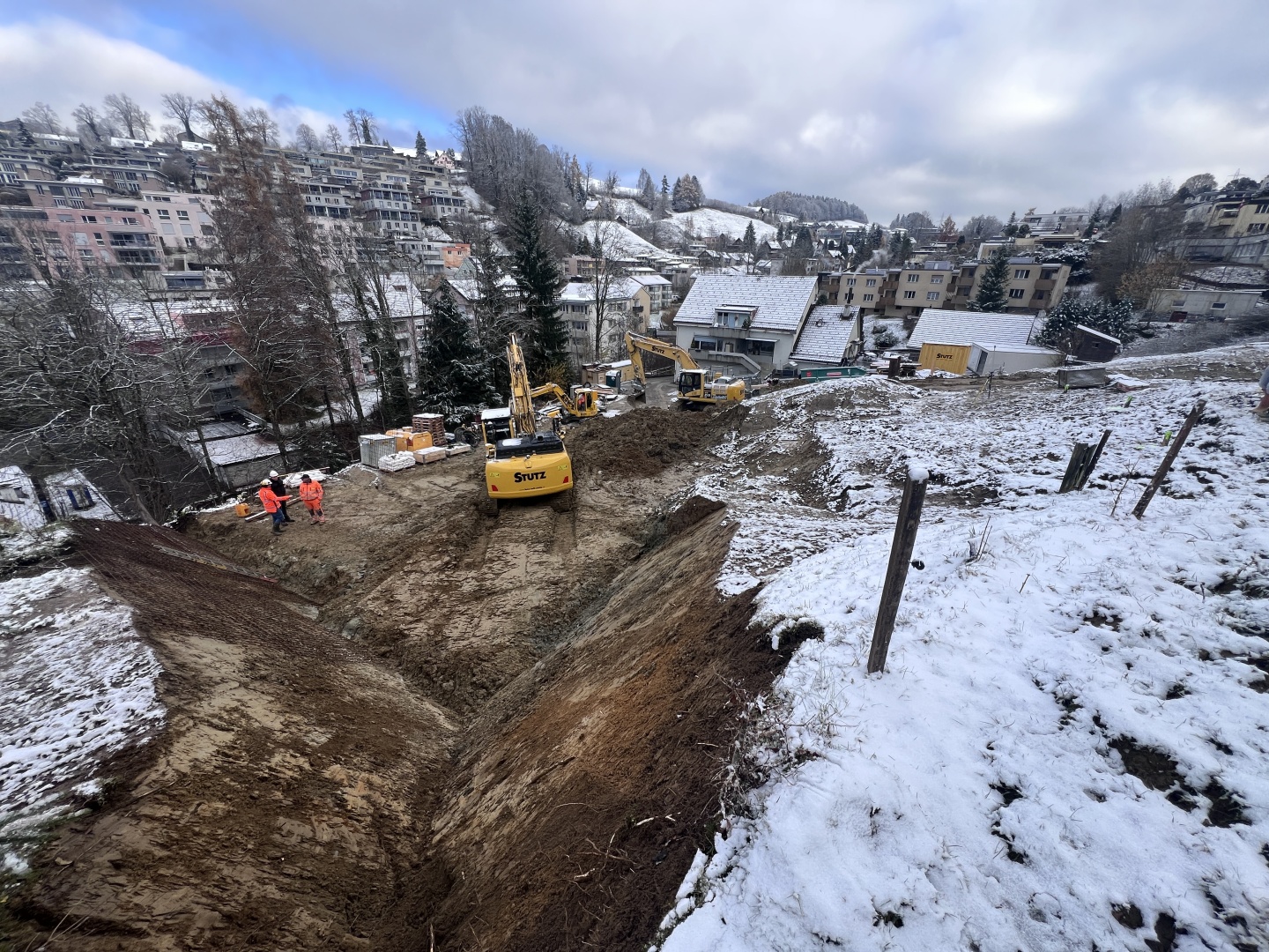 Der Voraushub ist erstellt, die Depots sind angelegt und die Massnahmen zur Böschungssicherung haben begonnen.