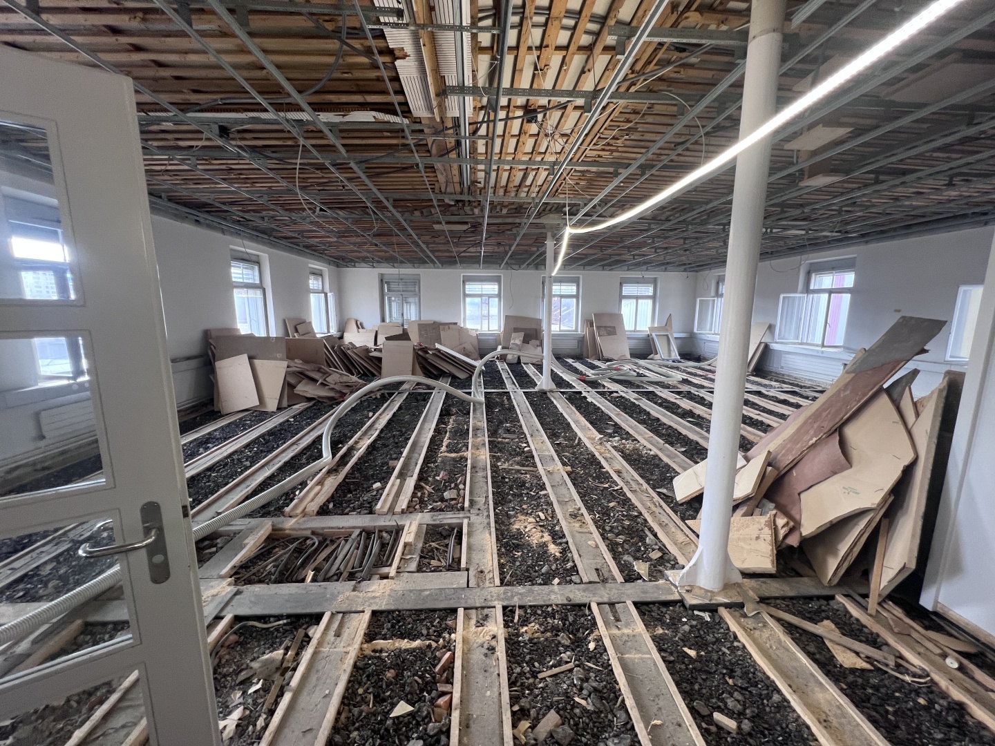 Die Schadstoffsanierung ist im Gang. Erste Rückbauarbeiten wurden gestartet.
